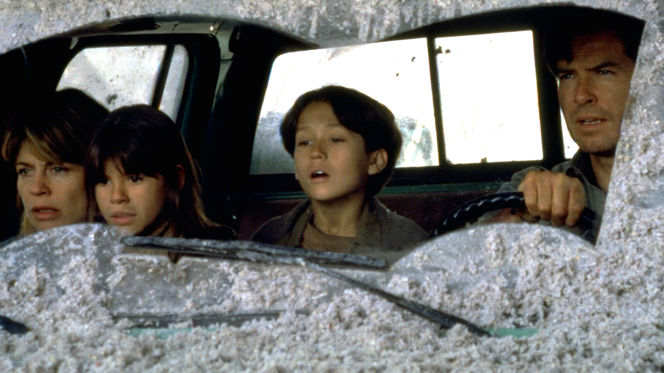 해리 달톤(Harry Dalton: 피어스 브로스난 분)이 녹은 바위의 파편인 화산탄이 그의 약혼녀를 죽이며 트럭을 덮칠때 고온쇄설성의 구름과 경주하는 장면으로 끝나는 불길한 콜롬비아 화산의 대피장면으로 영화는 시작된다.